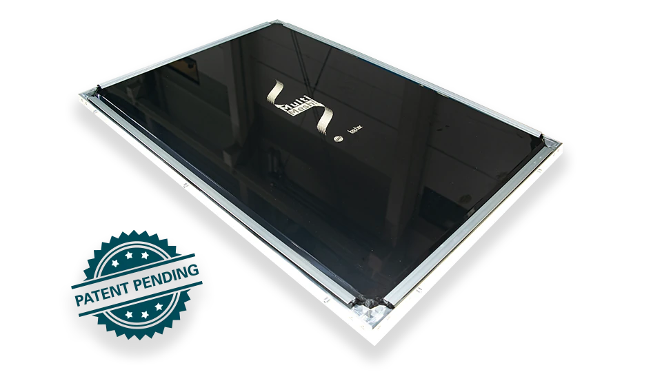 Mit MultiMesh! beginnt eine neue Ära im Siebdruck. Anstelle eines herkömmlichen Gewebes verwenden wir eine innovative Kunststofffolie mit aussergewöhnlichen Eigenschaften – langlebig, präzise und vollständig geschlossen. Diese Spezialfolie wird über einen selbstspannenden Rahmen gespannt und bildet eine zu 100 % geschlossene und stabile Basis, die direkt bebildert werden kann. Die zentrale Innovation: Anders als bei herkömmlichen UV-basierten Systemen wird das Druckbild mit hochpräzisen Thermolasern aufgebracht. Das druckbare Motiv wird direkt in den Kunststoff gelasert, wobei eine gewebeähnliche Struktur mit dem Laser erzeugt wird. Das vom klassischen Siebdruck bekannte Mesh wird nun also digital durch den Laser erzeugt, sodass die Druckfarbe an den exakt gewünschten Stellen durchgedruckt werden kann – ganz ohne den Einsatz eines klassischen Gewebes.
